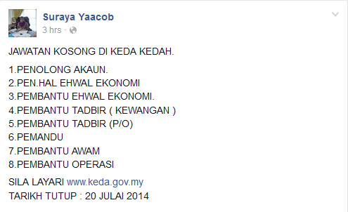 Exco Kongsi Maklumat Jawatan Kosong KEDA @Suraya_Yaacob