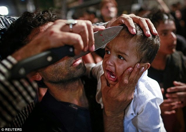 Lebih mengerikan, beribu-ribu puak Syiah termasuk kanak-kanak dipaksa oleh ibu bapa mereka melakukan upacara mengelar badan mengunakan alatan tajam seperti rantai pisau.